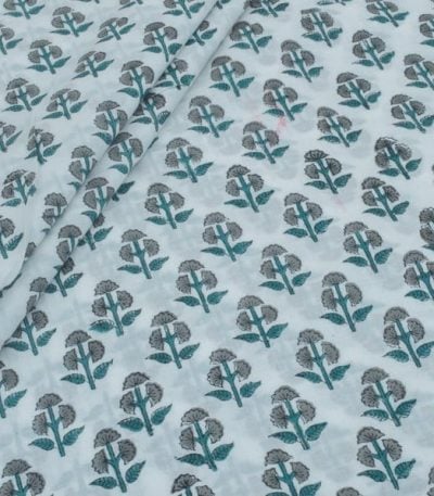 Pre-Cut 1.30m White Floral Handblock Printed 100% Pure Soft Cotton Fabric