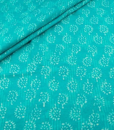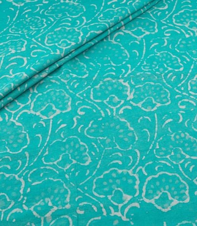 Turquoise Blue Bagru Handblock Printed Cotton Fabric