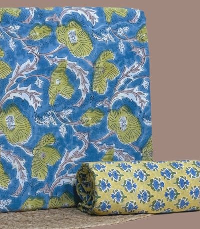 Blue – 2pc Pure Soft Cotton Blockprinted Top and Bottom Fabric Set