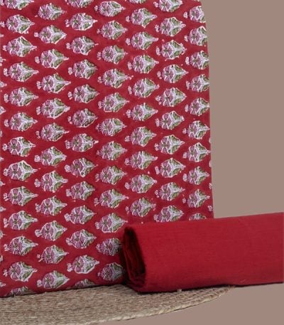 Red – 2pc Pure Soft Cotton Top and Handloom Cotton Bottom Fabric Set
