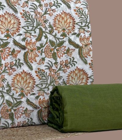 Green – 2pc Pure Soft Cotton Top and Handloom Cotton Bottom Fabric Set