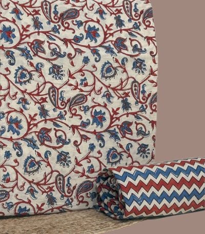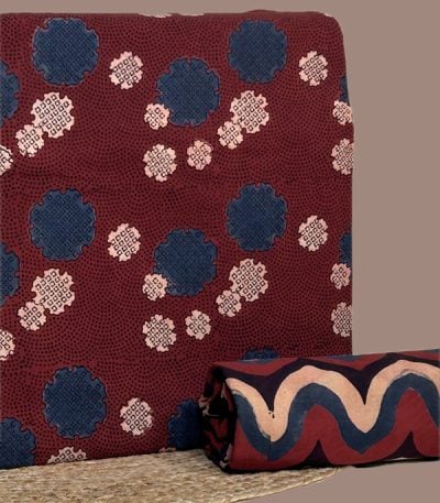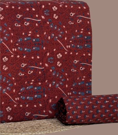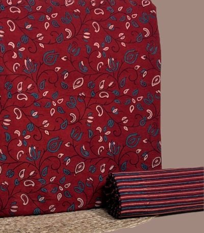 Red – 2pc Ajrakh HandCrafted Cotton Top and Bottom Cotton Fabric Set