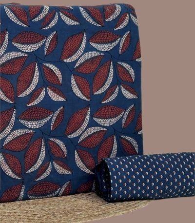 Blue – 2pc Ajrakh HandCrafted Cotton Top and Bottom Cotton Fabric Set