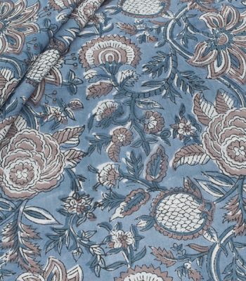 Pre-Cut 1.80m Sky Blue Floral Handblock Printed 100% Pure Soft Cotton Fabric