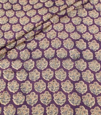 Pre-Cut 1.30m English Violet Floral Handblock Printed 100% Pure Soft Cotton Fabric