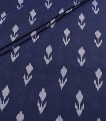 Pre-Cut 2.30m Prussian Blue Mercerised Fine Handloom Ikkat Tie-Dye Pure Soft Cotton Fabric