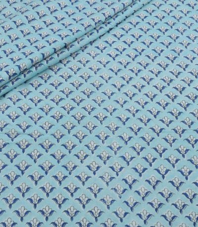 Icy Blue Floral Handblock Printed 100% Pure Soft Cotton Fabric