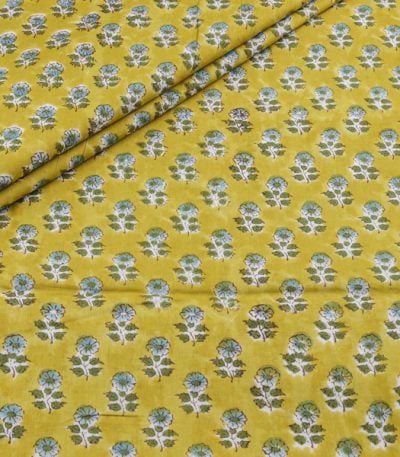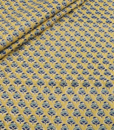 Tuscany Yellow Floral Handblock Printed 100% Pure Soft Cotton Fabric