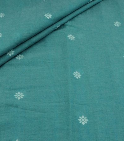 Mint Blue Woven Design Flowy HandLoom Pure Soft Cotton Fabric
