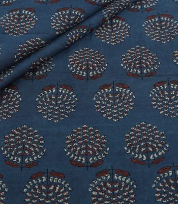 Natural Indigo Blue Dye Handblock Ajrakh Printed Cotton Fabric