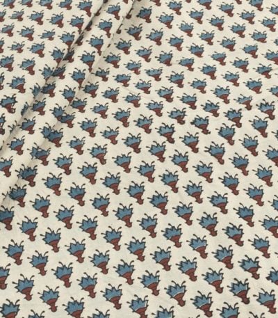 Natural White Intricate Handblock Ajrakh Printed Cotton Fabric
