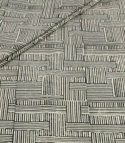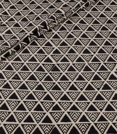 Natural Black Bagru Handblock Printed Cotton Fabric