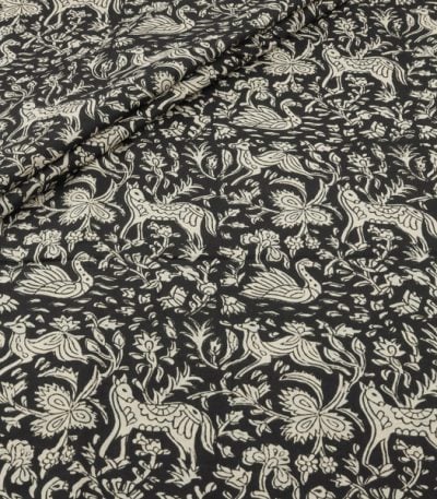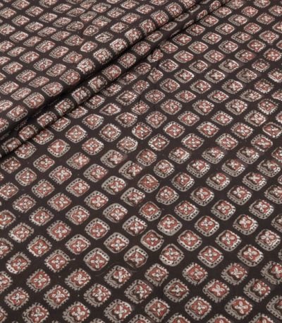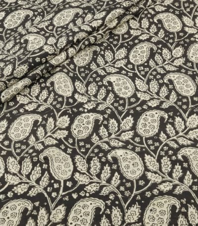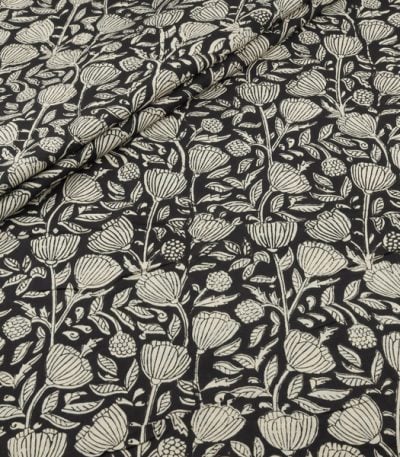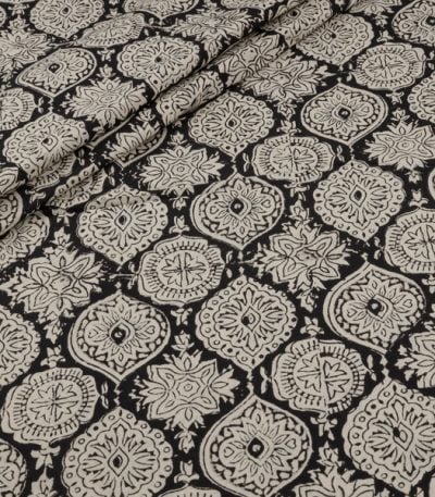 Natural Black Bagru Handblock Printed Cotton Fabric