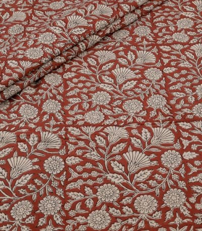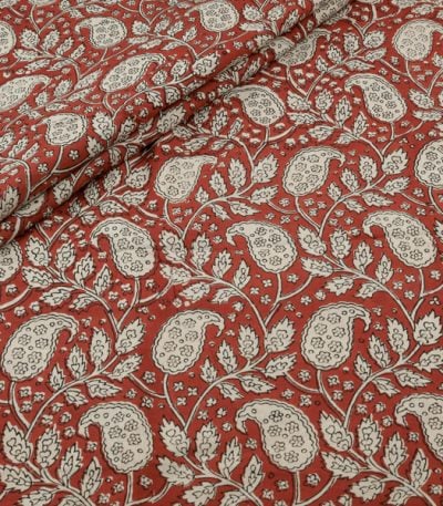 Natural Red Bagru Handblock Printed Cotton Fabric