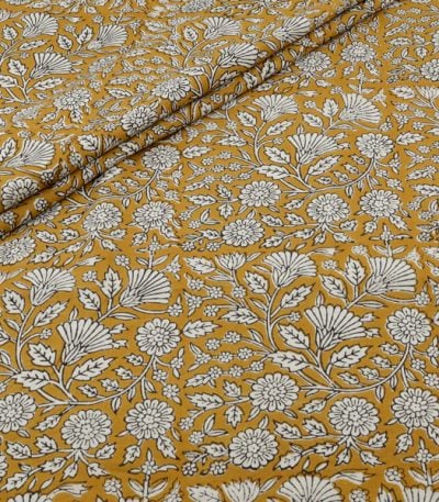 Natural Musturd Bagru Handblock Printed Cotton Fabric