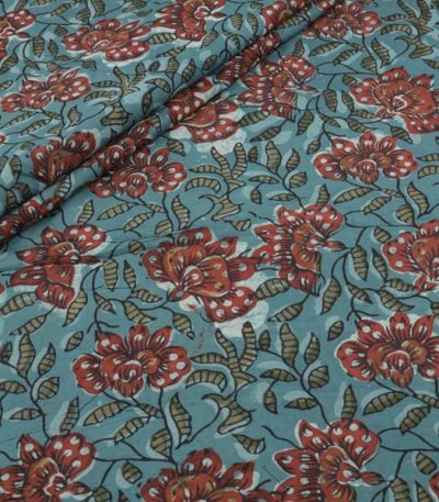 Peacock Blue Bagru Handblock Printed Cotton Fabric