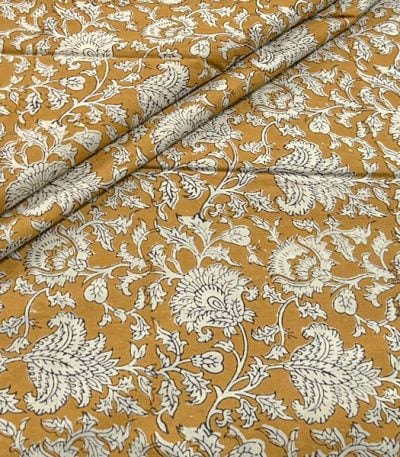 Natural Mustard Yellow Bagru Handblock Printed Cotton Fabric