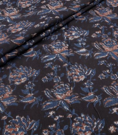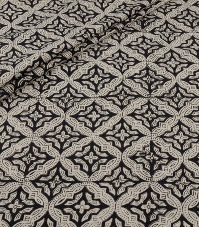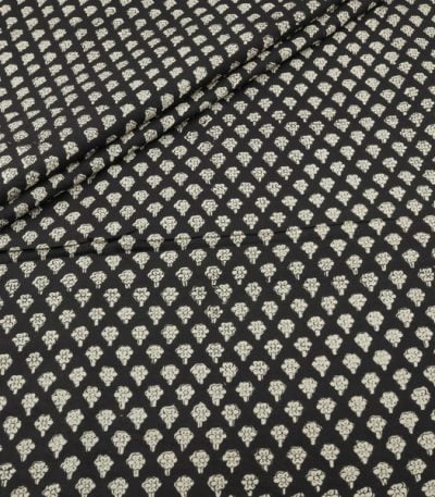 Natural Black Bagru Handblock Printed Cotton Fabric
