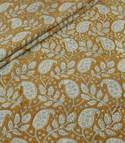 Natural Musturd Bagru Handblock Printed Cotton Fabric