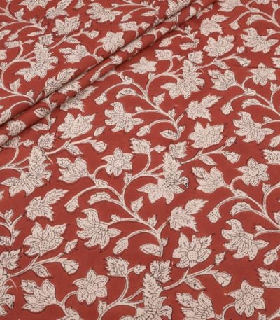 Natural Red Bagru Handblock Printed Cotton Fabric
