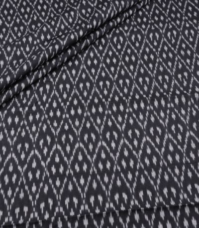 Black Mercerised Fine Handloom Ikkat Tie-Dye Pure Soft Cotton Fabric