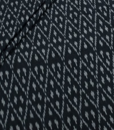 Black Mercerised Fine Handloom Ikkat Tie-Dye Pure Soft Cotton Fabric