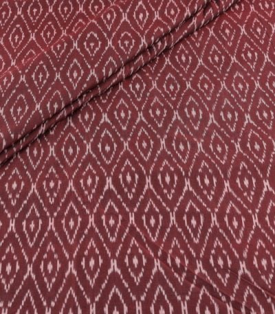 Brownish Red Mercerised Fine Handloom Ikkat Tie-Dye Pure Soft Cotton Fabric