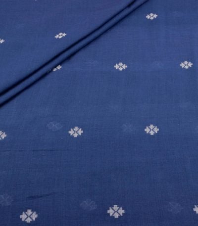Classic Navy Blue Authentic HandLoom Woven Design Flowy Soft Cotton Fabric