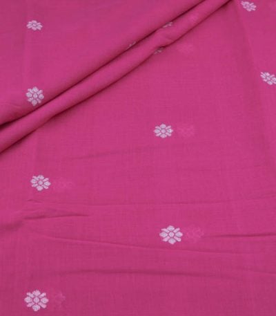 Hot Pink Woven Design Flowy HandLoom Pure Soft Cotton Fabric