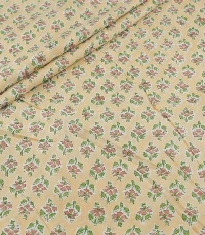 Yellow Floral Handblock Printed 100% Pure Soft Cotton Fabric