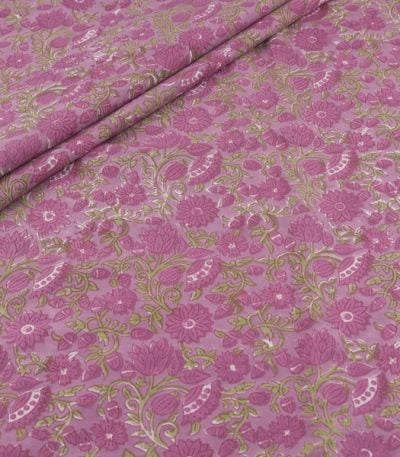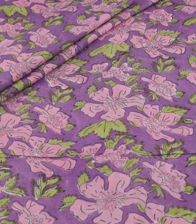 African Violet Floral Handblock Printed 100% Pure Soft Cotton Fabric