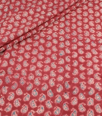 Ruby Red Floral Handblock Printed 100% Pure Soft Cotton Fabric