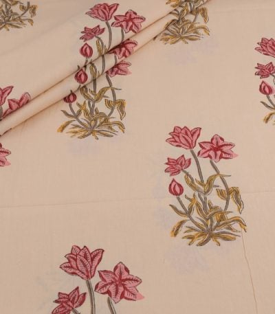 Beige Floral Handblock Printed 100% Pure Soft Cotton Fabric