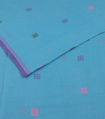 Cerulean Blue – Woven Design Handloom Pure Soft Cotton Fabric