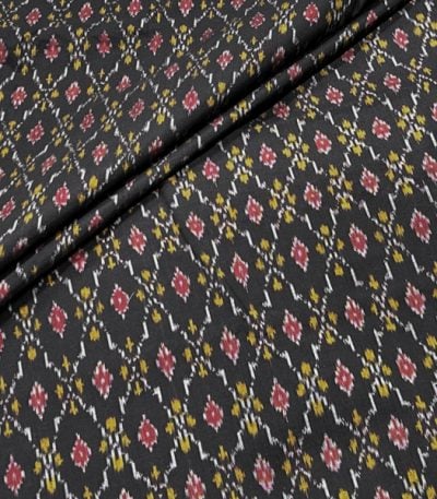 Black Authentic Handwoven Soft Silk-Cotton Ikkat Fabric