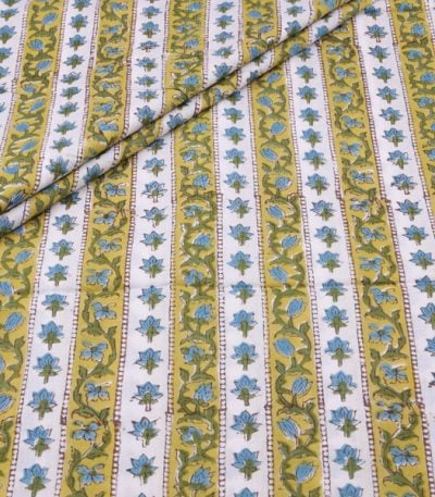 Champagne Yellow Floral Handblock Printed 100% Pure Soft Cotton Fabric