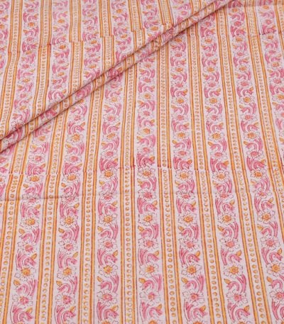 White Floral Handblock Printed 100% Pure Soft Cotton Fabric