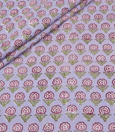 Pastel Purple Floral Handblock Printed 100% Pure Soft Cotton Fabric