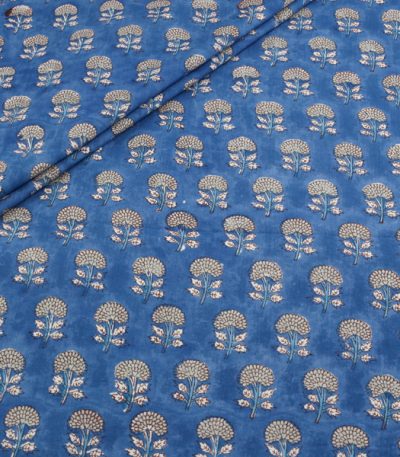 Smart Blue Floral Handblock Printed 100% Pure Soft Cotton Fabric