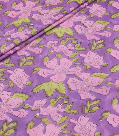 Pre-Cut 0.90m Fuchsia Purple Floral Handblock Printed 100% Pure Soft Cotton Fabric