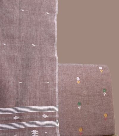 Brown – 2pc Handloom Cotton Dupatta and Handloom Woven Design Top Fabric Set