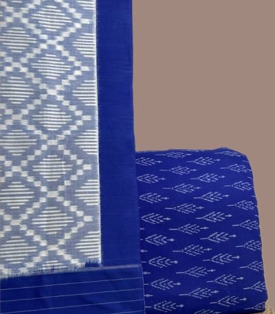 Blue – 2pc Ikkat Cotton Dupatta and Handloom Soft Ikkat Cotton Top Fabric Set