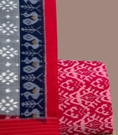 Red – 2pc Ikkat Cotton Dupatta and Handloom Soft Ikkat Cotton Top Fabric Set