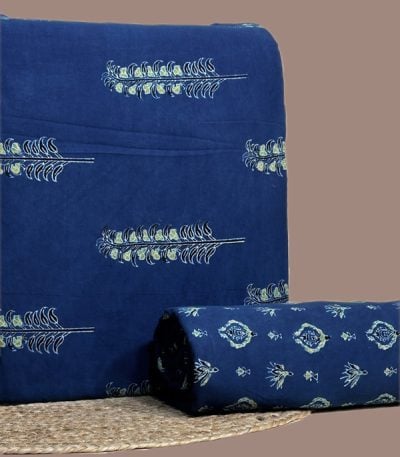 Blue – 2pc Ajrakh HandCrafted Cotton Top and Bottom Cotton Fabric Set