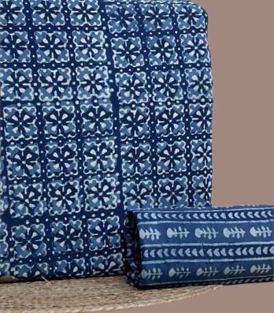 Blue – 2pc Bagru HandCrafted Top and Bottom Cotton Fabric Set