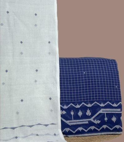 Blue – 2pc Handloom Cotton Dupatta and Jamdani Intricate Woven Border Top Fabric Set