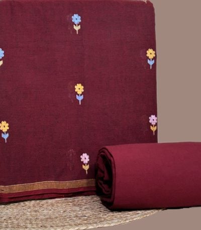 Maroon – 2pc Handloom Woven Design Cotton Top and Handloom Soft Cotton Bottom Fabric Set