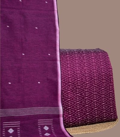 Purple – 2pc Handloom Cotton Dupatta and Handloom Ikkat Top Fabric Set