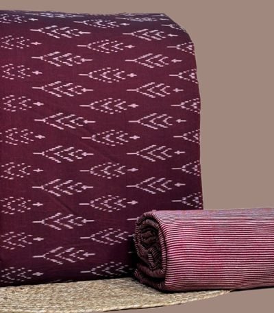 Maroon – 2pc HandCrafted Ikkat Top and Handloom Woven Stripes Bottom Fabric Set