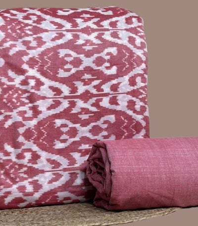 Pink – 2pc HandCrafted Ikkat Top and Mangalgiri Cotton Bottom Fabric Set